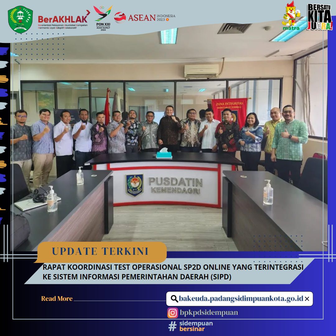 Dalam Rangka Kegiatan Test Operasional SP2D Online sekaligus launcing Penerapan SP2D Online yang terintegrasi SIPD terhadap BPD SUmatera Utara.Rapat tersebut dihadiri Plt. Kaban BPKPD Kota Padang Sidempuan Ady Supriadi,S.E,M.M yang didampingi Kabid Perbendaharaan Asir Aryadi,S.E, Fungsional Perencan... Baca Selengkapnya